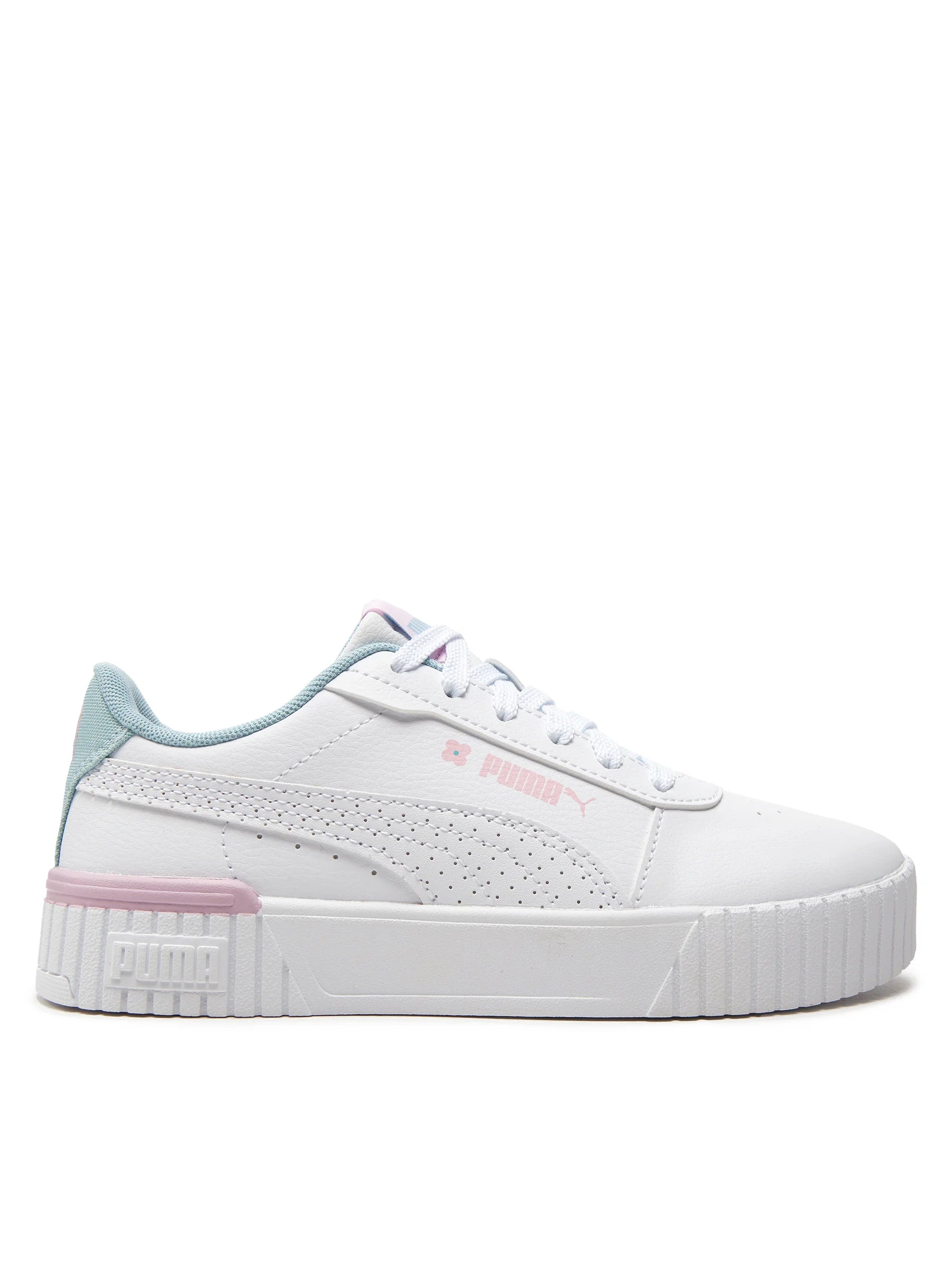 اكتشفي سحر الإطلالة الاستوائية الجريئة مع سنيكرز Puma Carina 2.0 Tropical Jr Girls 395574-01، حيث يجمع بين التصميم الرجعي الأنيق من الجلد الاصطناعي الأبيض النقي مع طباعات استوائية نابضة بالحياة في لمسات أخضر ووردي حيوية، مزود بوسادة داخلية مريحة وسولة مطاطية متينة لدعم ديناميكي وثبات يومي، مثالي للفتيات الصغيرات اللواتي يمزجن الراحة بالأسلوب العصري في كل خطوة مغامرة. 👟🤍🌴✨