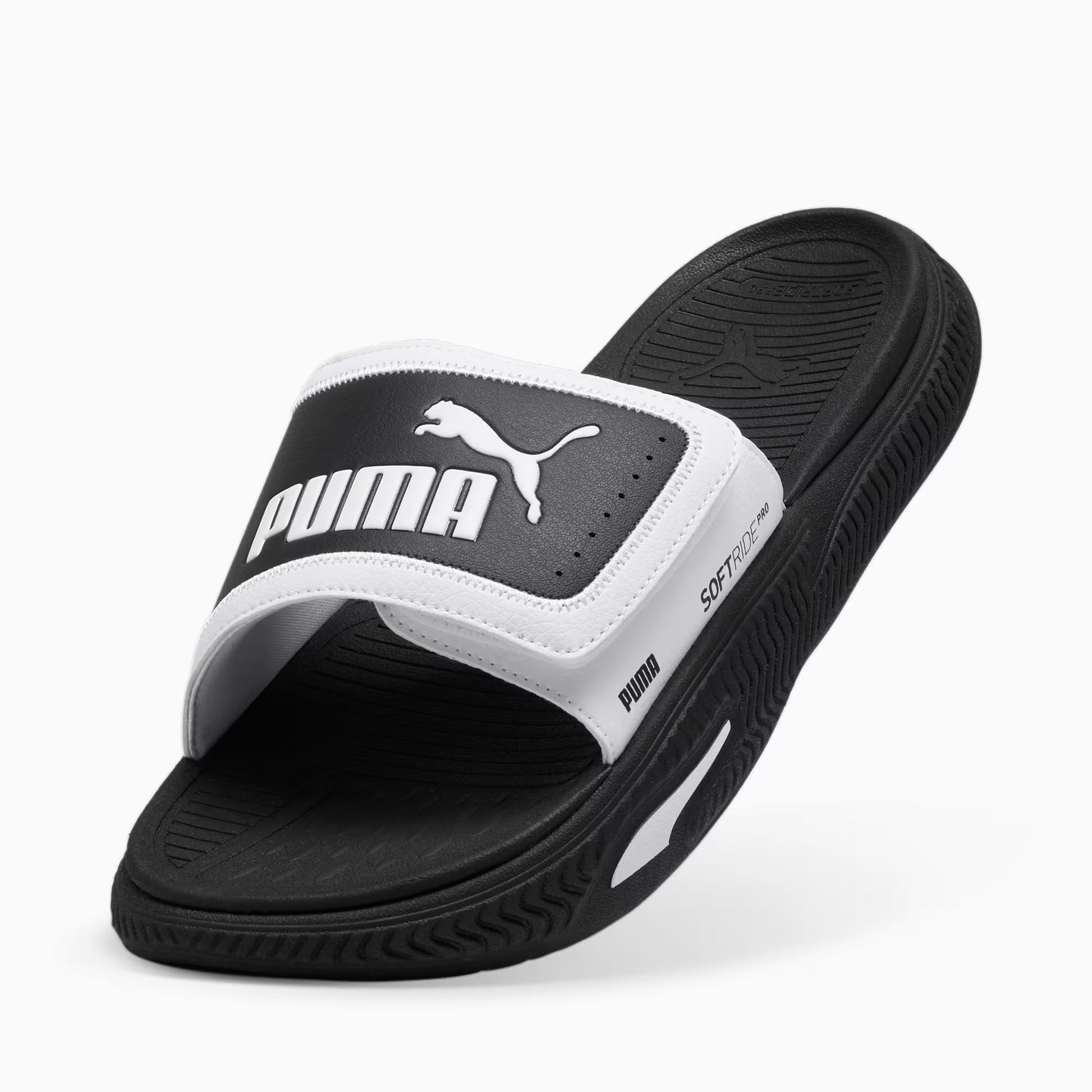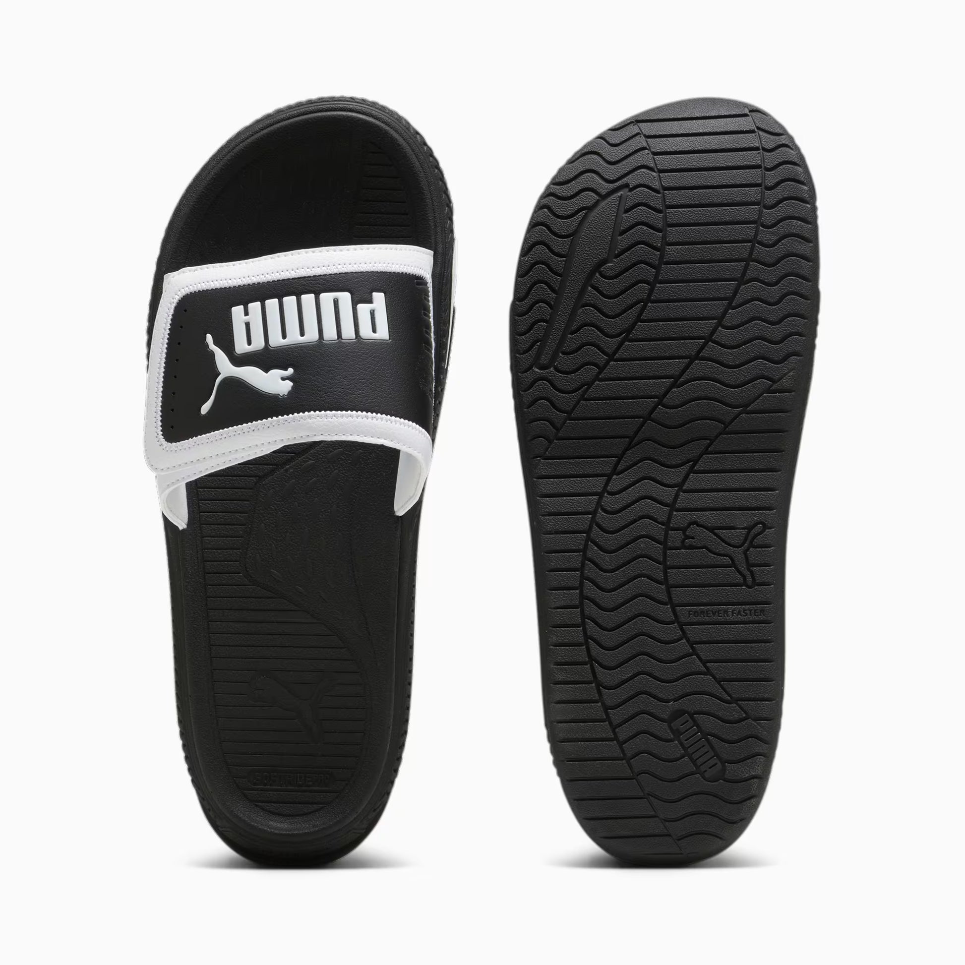 هذه الشفلات الرياضية الأنيقة من Puma تجمع بين الراحة والأسلوب العصري بتصميمها الأسود مع لمسة بيضاء مميزة تحمل شعار العلامة التجارية. مصنوعة من مواد متينة وخفيفة الوزن، توفر دعماً ممتازاً وتهويلاً مثالياً للقدمين، مما يجعلها مثالية للاستخدام اليومي أو بعد التمارين. تصميمها البسيط والعملي يضيف لمسة أنيقة لإطلالتك في أي وقت.