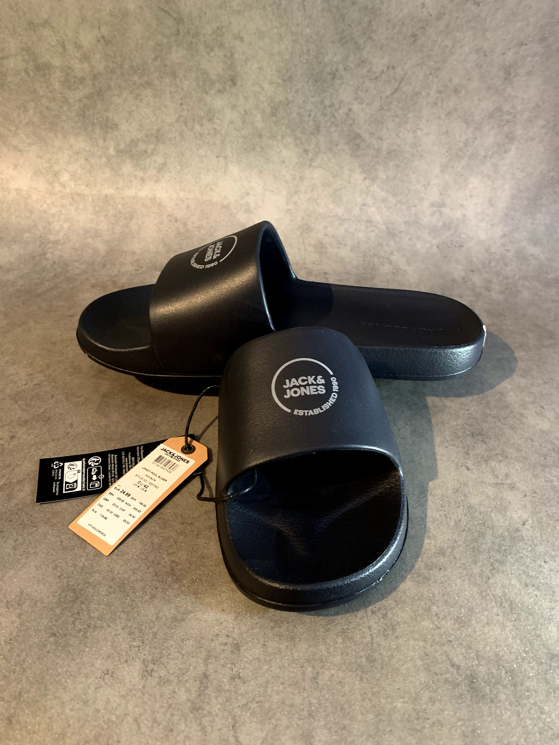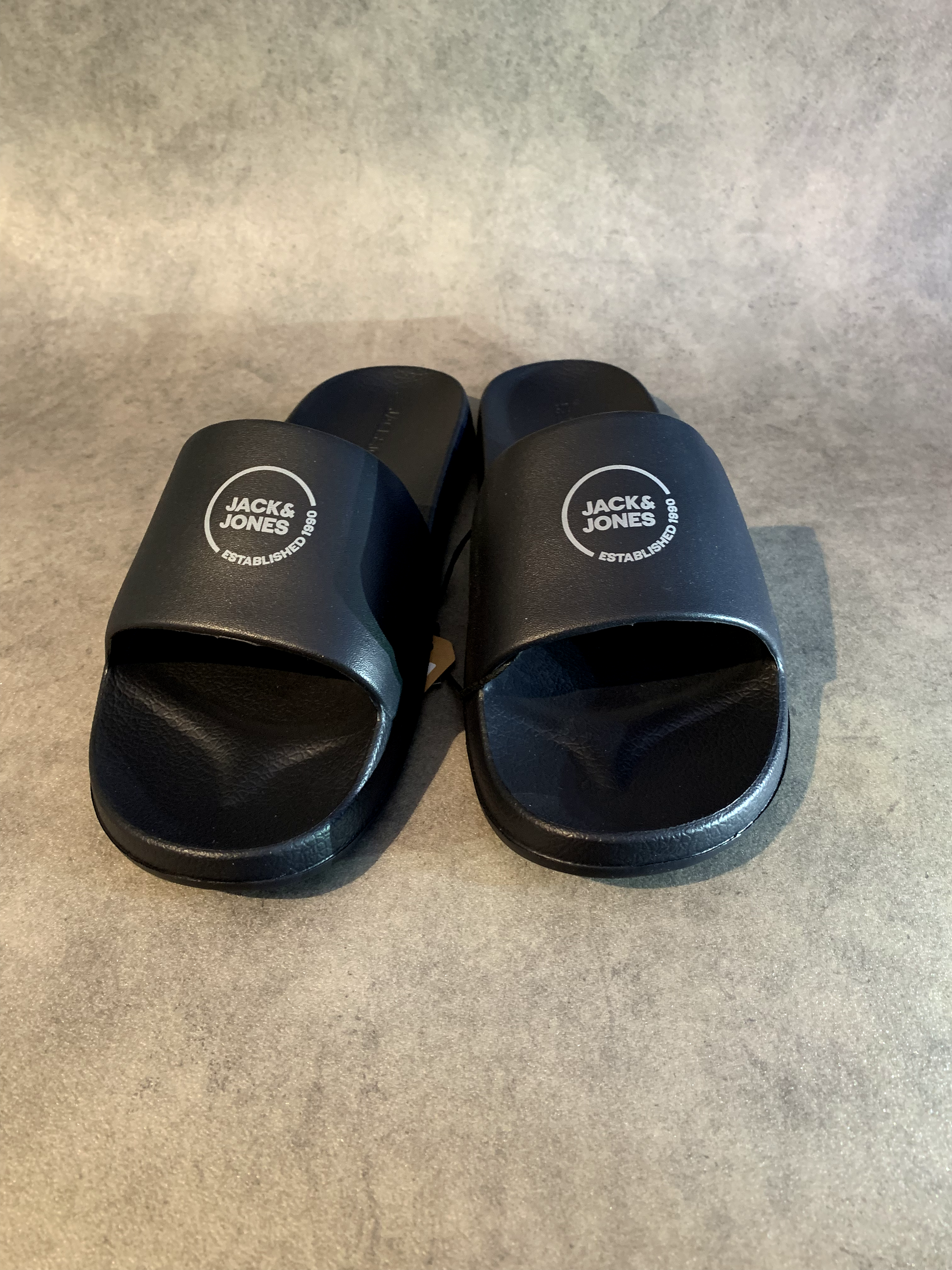 هذه الصنادل من جاك آند جونز بلون أسود كلاسيكي! 🖤 تحمل شعار "JACK & JONES ESTABLISHED 1990" داخل دائرة بيضاء على الشريط العلوي، مما يضيف لمسة مميزة. 😎 مصنوعة من مادة مريحة وخفيفة، مثالية للاستخدام اليومي أو الخروجات. 🏖️ تأتي مع وسم للتفاصيل، تصميم أنيق وعملي! 🌟