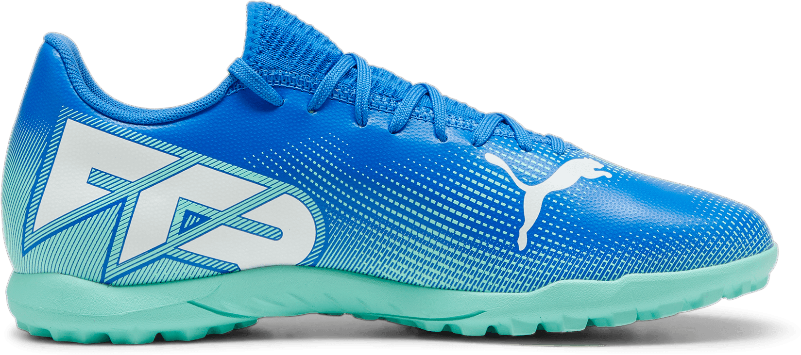 اكتشف السرعة والسيطرة في الملعب مع حذاء كرة القدم للرجال PUMA Future 7 Play TT HP 107943-01 بلون الأزرق الهايبرلينك والنعناعي والأبيض النقي، حيث يجمع بين التصميم الخفيف الوزن والمتين من الجلد الاصطناعي الناعم مع طوق مرن لدعم مريح وإحساس داعم طوال المباراة، مزود بنظام Dynamic Motion المتقدم للجري السريع والتغييرات الديناميكية مع مسامير متعددة لجرابة فائقة على العشب الاصطناعي أو الطبيعي الصلب، مثالي للرجال الذين يطاردون الإبداع والفوز بأسلوب عصري يعزز الثقة في كل تمريرة أو تسديدة. ⚽🔵🟢🤍✨